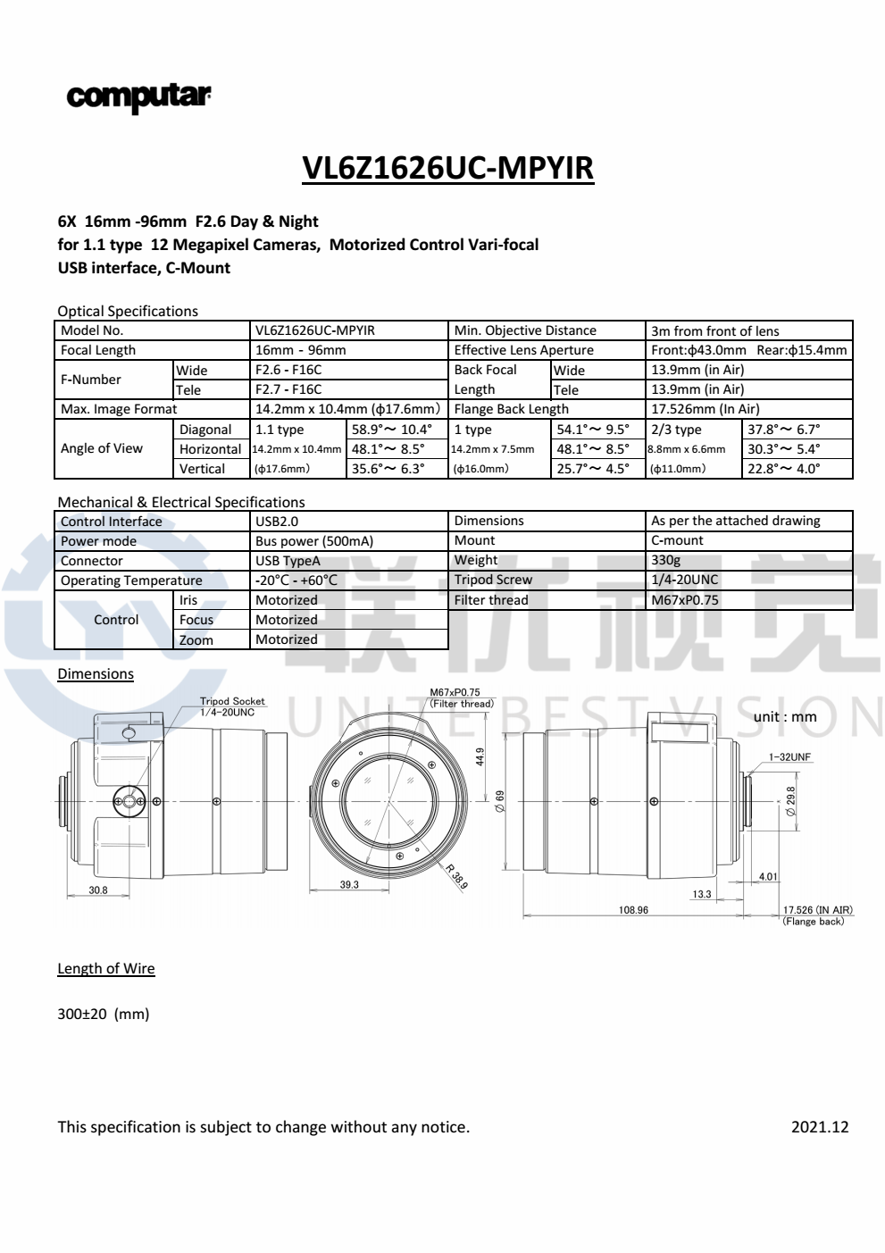 全新電動鏡頭,可通過 USB 供電和控制(適用于 I2C 版本)